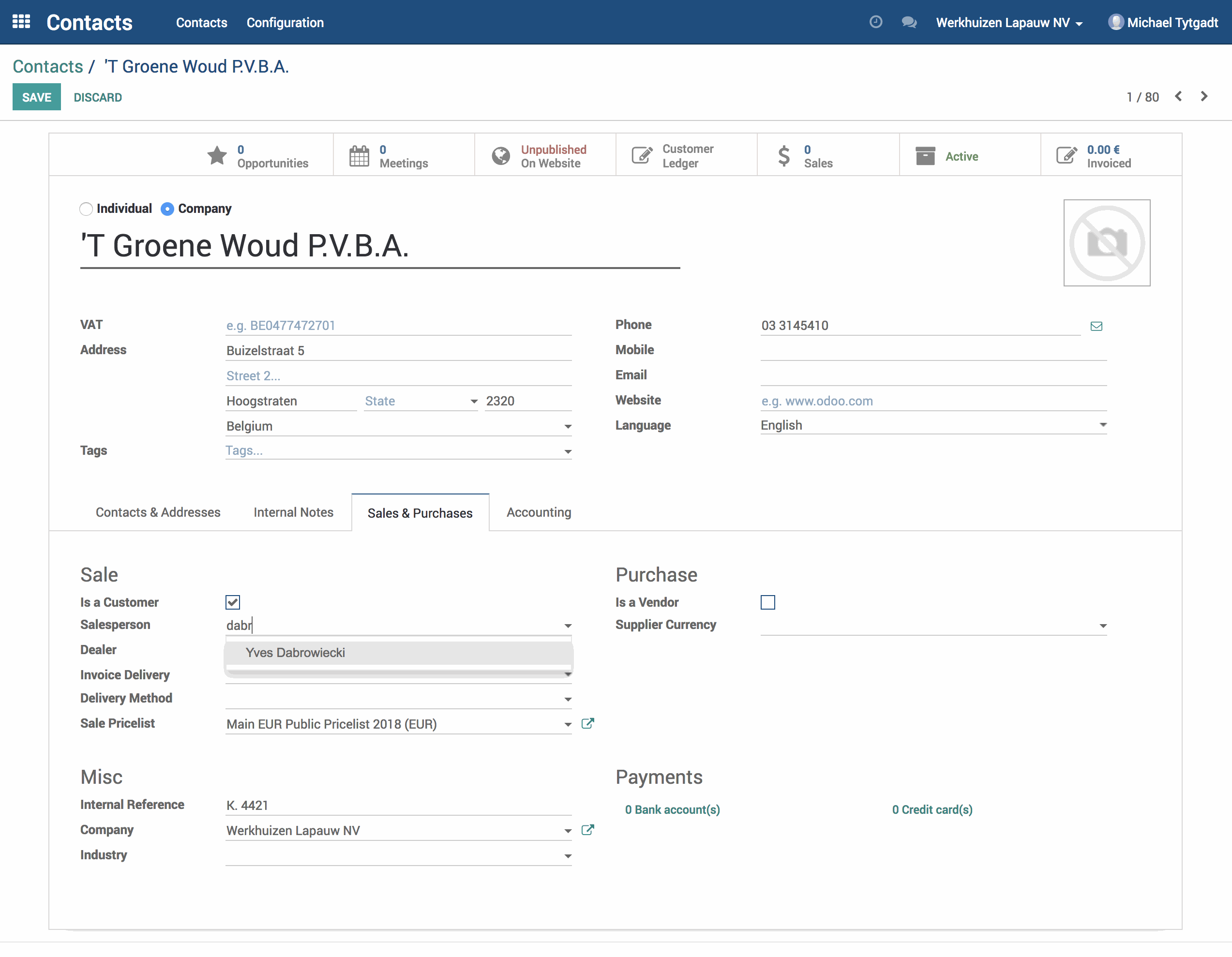 7. back in Odoo: at the top of the list click the button 'import' and load the file